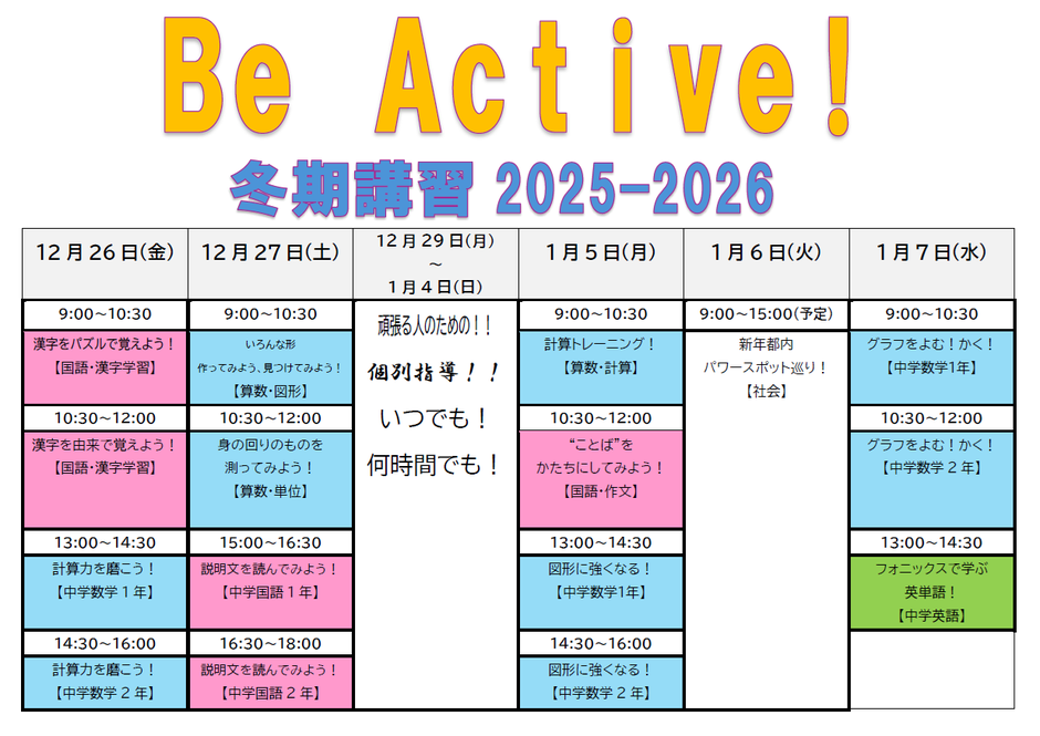 冬期講習を受けて入会される方は、入会金無料、初月の授業料半額です!