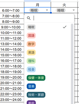 塾では、以下のようなテスト前のスケジュールのスプレッドシートを配布しております。これを各自打ち込んでもらい(できていない人もおりますが苦笑)、塾と共有することでその子の学習状況を把握しています。